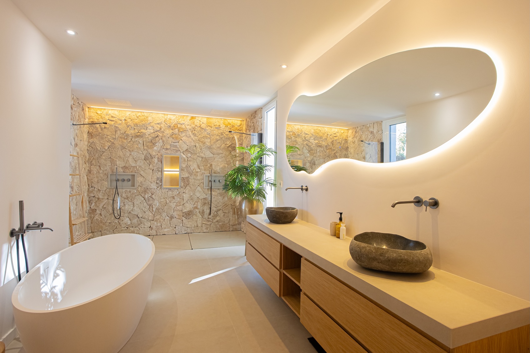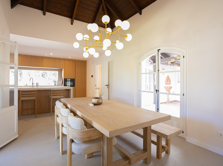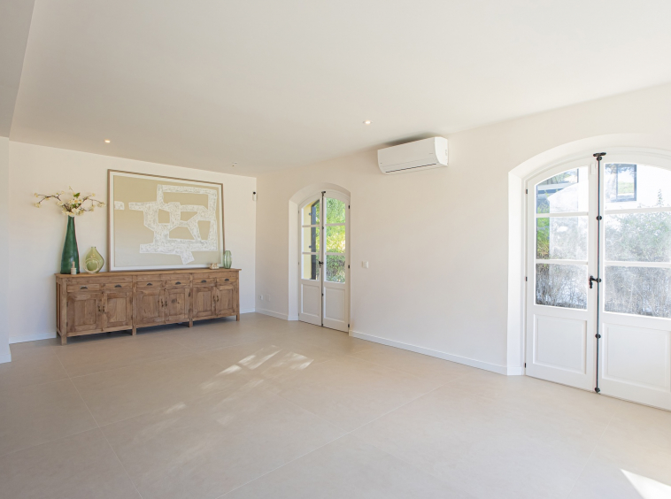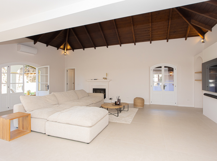The villa features four spacious double bedrooms, including two with en-suite bathrooms, one shared family bathroom, and an additional guest WC. The stylish open-plan kitchen flows seamlessly into a bright and elegant dining area. Beyond this, you’ll find a magnificent double living room with impressive vaulted ceilings, creating a sense of space and light. Outside, enjoy a large private garden with newly laid grass, a generous swimming pool, and a dedicated BBQ and outdoor dining area — perfect for entertaining or relaxing. There is also an inviting outdoor lounge space to enjoy the Mediterranean climate.